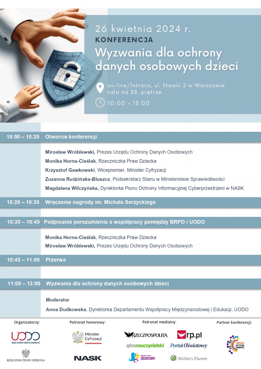 The conference, organised by the President of the Personal Data Protection Office in cooperation with the Ombudsman for Children, will take place on 26 April 2024 between 10 a.m. and 1 p.m.