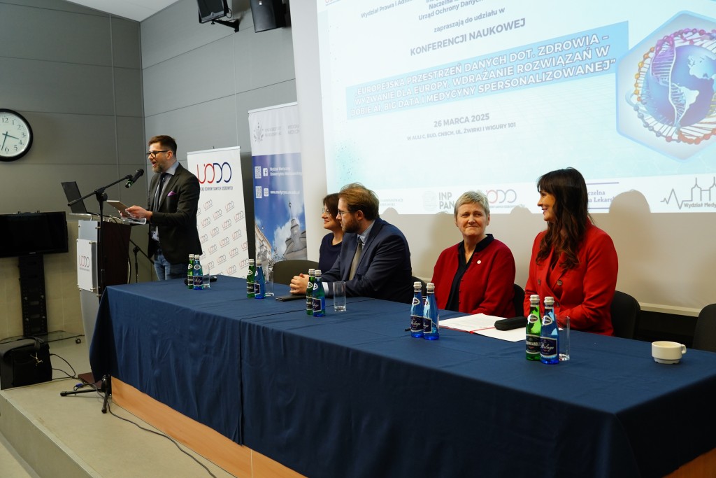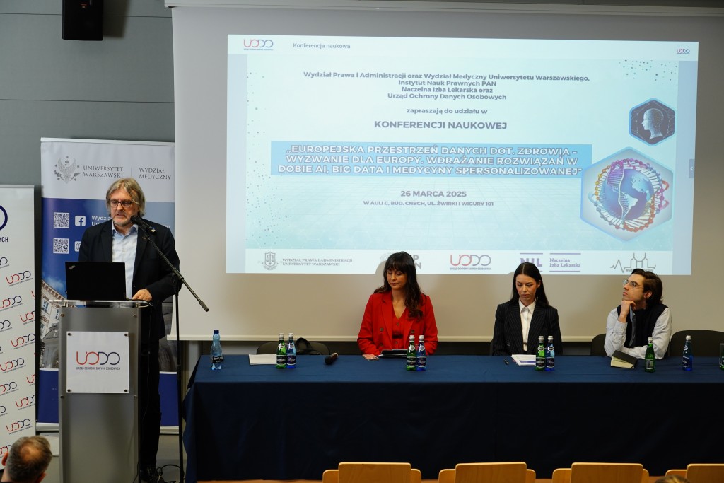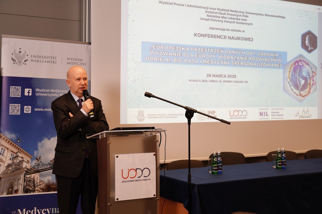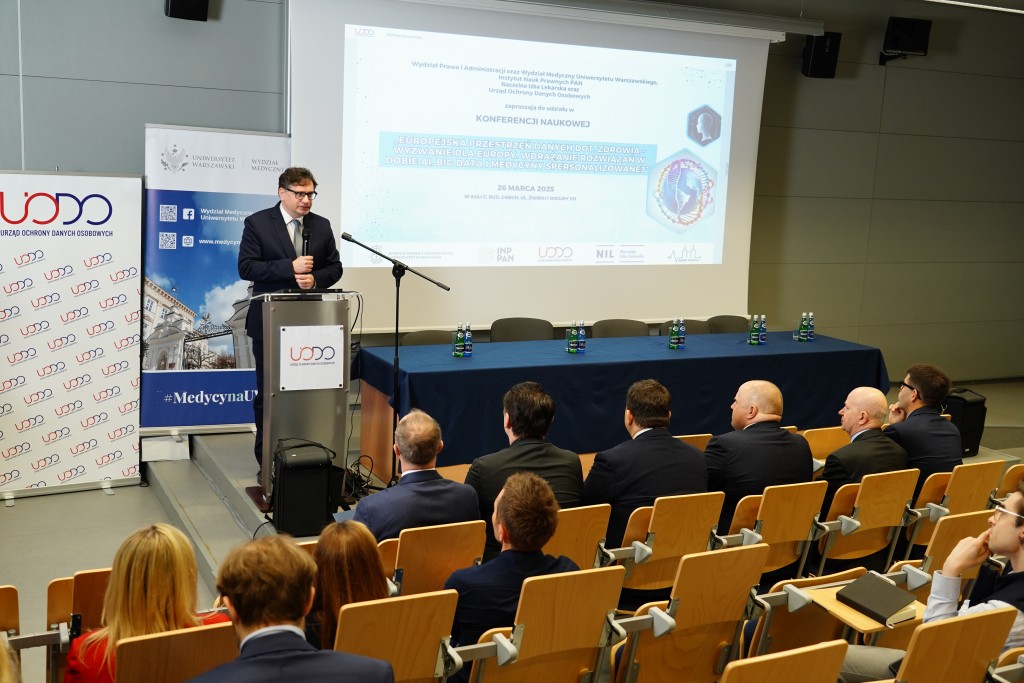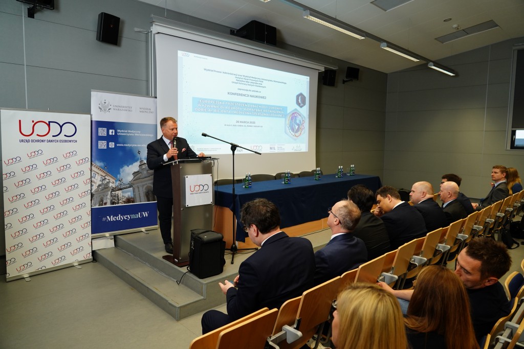 26 marca, w dniu wejścia w życie Europejskiej przestrzeni danych dotyczących zdrowia (EHDS) – rozporządzenia Parlamentu Europejskiego – odbyła się konferencja „Europejska przestrzeń danych dot. zdrowia – wyzwanie dla Europy. Wdrażanie rozwiązań w erze AI, Big Data i medycyny spersonalizowanej”. Wydarzenie zostało zorganizowane przez Prezesa Urzędu Ochrony Danych Osobowych wraz z Wydziałem Prawa i Administracji Uniwersytetu Warszawskiego (UW), Wydziałem Medycznym UW, Instytutem Nauk Prawnych Polskiej Akademii Nauk oraz Naczelną Izbą Lekarską.