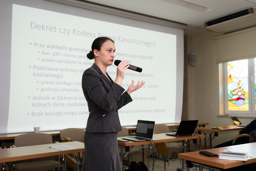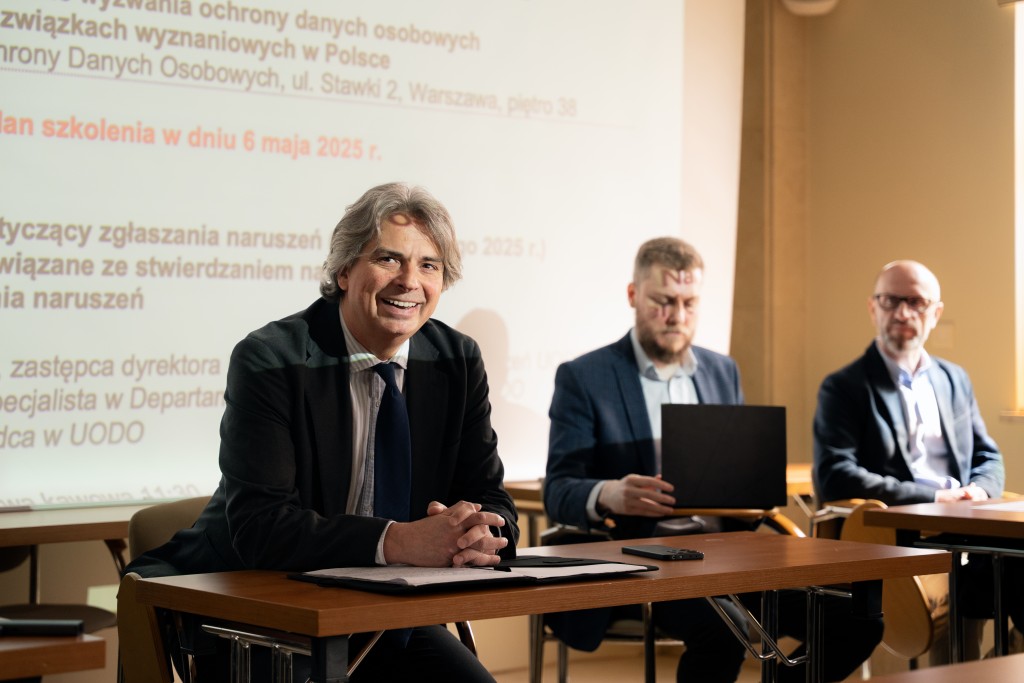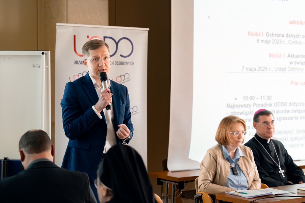 Szkolenie zostało podzielone na dwie części. W pierwszej pracownicy UODO przedstawili najnowszy poradnik Urzędu dotyczący zgłaszania naruszeń (wersja z lutego 2025 r.). Szczególną uwagę zwrócono na kwestie obowiązków administratorów związanych ze stwierdzaniem naruszeń, wytycznych dotyczących zgłaszania naruszeń, a także działań zaradczych. Po przerwie uczestnicy w sesji Q&A mieli możliwość zadawania pytań do przedstawicieli UODO. Odpowiedzi na pytania dot. poradnika, jak również w sprawach bieżących, udzielali: Katarzyna Hildebrandt, zastępca dyrektora Departamentu Kontroli i Naruszeń UODO, Bartłomiej Kowalski, specjalista w DKN UODO, Jakub Groszkowski, radca w UODO, Andrzej Zieliński, naczelnik w DKN. W drugiej części pracownicy Urzędu mieli okazję wysłuchać prelekcje o przetwarzaniu danych osobowych w mediach społecznościowych przez instytucje i podmioty kościelne, a także o ujawnianiu danych z postępowań kościelnych. Była to okazja do zapoznania się z problematyką funkcjonowania tych podmiotów na styku prawa wewnątrzkościelnego i prawa powszechnie obowiązującego w Polsce.