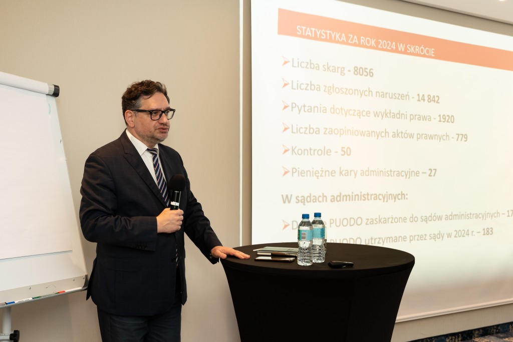 W swoim wystąpieniu prezes UODO podsumował działalność UODO w 2024 r., odnosząc się do statystyk dotyczących skarg, naruszeń, kontroli i kar, a także do legislacji oraz nowych obowiązków Urzędu. Podkreślił, że kary pieniężne nie są celem samym w sobie: „Egzekwowanie obowiązków wynikających z RODO – w tym zapewnienie realizacji praw osób, których dane dotyczą, i edukacja w zakresie ochrony danych to dwa priorytety działania UODO.