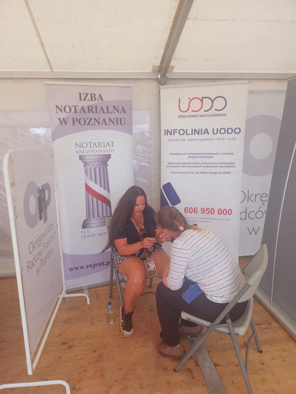W ramach udziału UODO w Festiwalu, w namiocie Krajowej Izby Radców Prawnych powstał stacjonarny punkt porad dotyczących ochrony danych osobowych. Przedstawicielka Infolinii Urzędu, Izabela Maryańska, wyjaśniała gościom festiwalu, jak mogą dochodzić swoich praw w przypadku naruszenia ochrony danych osobowych i prywatności. Pytania zainteresowanych dotyczyły m.in. danych osobowych cudzoziemców w Polsce i ich praw, świadomych zgód związanych z monitoringiem na podstawie Kodeksu pracy, zagadnień odnoszących się do praw autorskich, badań naukowych i ochrony danych, a także przyszłych paneli dyskusyjnych. Poruszono kwestie zazębiania się praw o ochronie danych osobowych i prawa kościelnego, np. przy apostazji. Pytania odnosiły się również do prawa do prywatności oraz sposobów na zabezpieczenie się przed cyberprzestępcami.