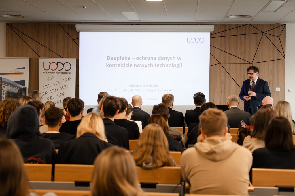 12 marca w ramach wydarzenia „Dzień Ochrony Danych Osobowych z Vizją” odbyła się seria wykładów oraz debata poświęcona aktualnym kwestiom związanym z ochroną danych osobowych w epoce gwałtownego rozwoju technologicznego, jak deepfake’i, rozpowszechnianie wizerunku małoletnich, czy sztuczna inteligencja. Swoje wystąpienia wygłosili prezes UODO Mirosław Wróblewski oraz Paulina Dawidczyk, dyrektor Departamentu Skarg w Urzędzie. Moderatorem debaty był Jakub Groszkowski, radca Prezesa UODO.